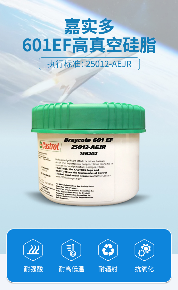 油脂簡述:Castrol Braycote 601EF(嘉實多601EF)是一種氟類潤滑脂,其可在- 80℃ ~ 205℃范圍內使用,同時具備優良的惰性,已廣泛用于多個國家的宇宙飛船、運載火箭、衛星、空間站等航天器上。"/>